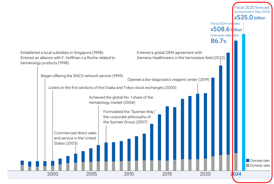 - As mentioned, Sysmex has been shaping hematology diagnostics for decades. Launching Japan’s first hematology analyzer (“blood counter”) in 1968 and built a model around selling analyzers, reagents, and training doctors and hospitals. As the industry shifted from manual to fully automated systems, especially from the late 1990s into the 2000s, Sysmex kept upgrading its technology and pulled ahead—particularly in Japan, then globally.