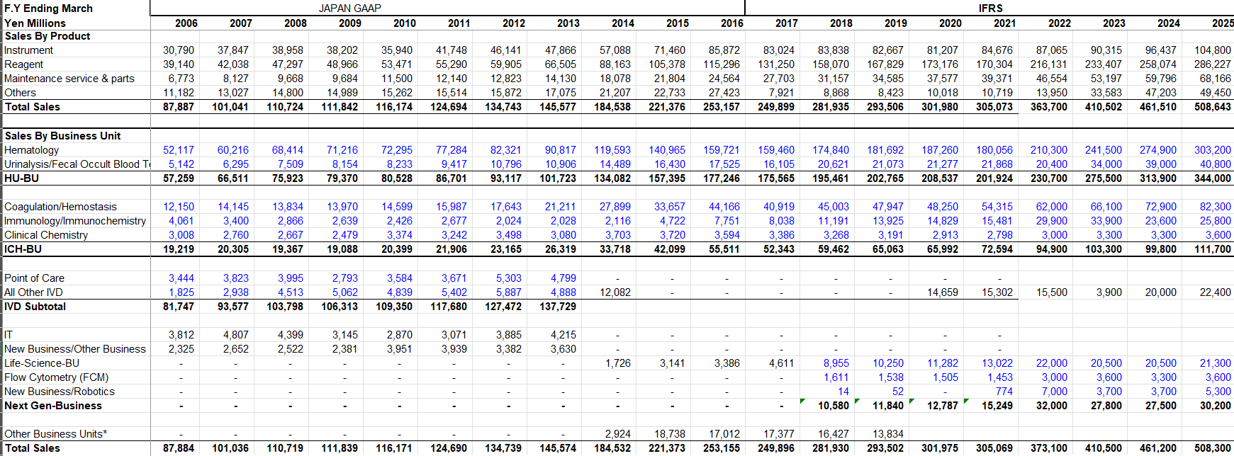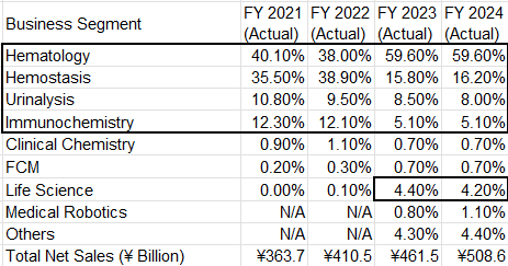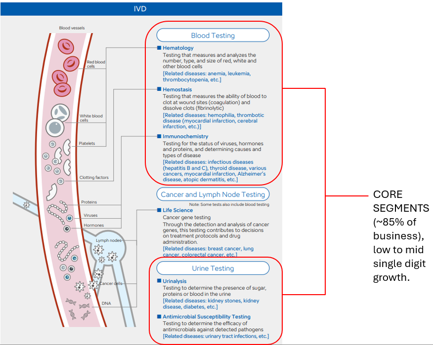 Sysmex has 4 core segments, you can see below, and the "others" I would catergorize as newer bets that they started investing in about 7-8 years ago.